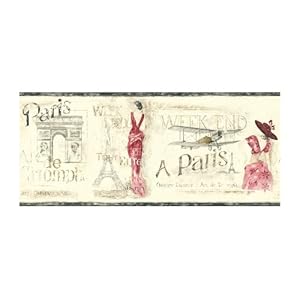 Product Description : From the ManufacturerThis vintage Parisian theme border is a stylish complement to faux marble wallpapers (PA5669, PA5665, PA5668, and PA5666). Beautifully color-coordinated in soft dreamy hues, and depicting French fashion, this border turns a bedroom into a "boudoir" or lends a bit of feminine French flair to your breakfast nook or powder room. Old world flavor with a touch of whimsy, the Europa collection of fine wallpapers adds a continental accent to your home through texture with color. Made in the USA. Product Description : Prepasted, Solid Vinyl, Scrubbable, Peelable.