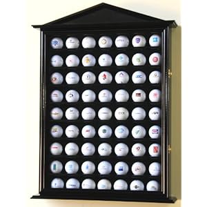Product Description : Our designer golf ball display cabinet is beautifully designed and constructed. This solid furniture-grade beech hardwood display case features a framed door to keep out dust and beveled shelves (8 spaces) with evenly spaced indentations for displaying 63 of your favorite golf balls. Back of the cabinet is lined with a lovely felt fabric to give added contrast to your golf balls collection. Cabinet features a mirrored top piece, crown trim designed base and header completed with brass hinges, door latch and installed wall hanging brackets. This golf ball display case is the perfect solution for your memorable shots, club championship, a new country club or souvenir as well as a great golf gift for the golfer with a special collection of golf balls! (golf balls are not included) Unit Weight: 18 lbs. Dimensions: 28"H X 18.5"W X 3.50"D Space between Shelves: 2"