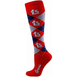 Product Description : St. Louis Cardinals Ladies Red-Navy Blue Argyle Tall SocksFits women's shoe sizes 6-1175 % Acrylic/25% Stretch nylonRib-knit cuffsOfficially licensed MLB productWoven graphicsMade in the USA75 % Acrylic/25% Stretch nylonFits women's shoe sizes 6-11Woven graphicsRib-knit cuffsMade in the USAOfficially licensed MLB product