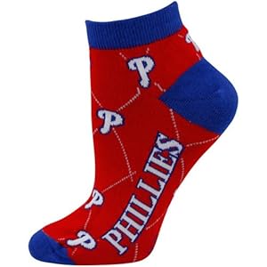 Product Description : Ladies, add some stylish Phillies fashion to your game day outfit with these Diamond ankle socks featuring the team name and an all-over team logo argyle pattern!75% Acrylic/25% Stretch nylonFits women's shoe sizes 6-11Woven graphicsRib-knit cuffsMade in the USAOfficially licensed MLB product