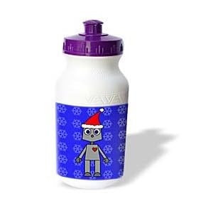 Product Description : Robot Santa Blue Snowflake Design Water Bottle is 21oz capacity - 8 inch tall, 2.5 inch diameter. Sports bottle have become a welcome addition to today's fitness craze. Use sports water bottle while exercising, gardening or watching sports events. Water bottle comes with image on both sides and it is top shelf dishwasher safe.