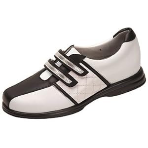Product Description : Asymmetric toe box design with contour fit tapered through the heel and arch. Leather. Two-density polyurethane soles, steel shanks, built in orthotic. Velcro closure.